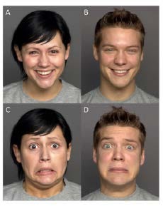 Antonia Düfeld and Sarah Jessen had fathers of seven-month-old infants wear T-shirts for three nights to collect body odor—a tried-and-true experimental method. In the lab, infants were placed in a car seat while wearing a plastic cap containing an array of 27 electrodes to record EEG signals. A T-shirt worn by either the baby’s father or another baby’s father was placed on the infant’s chest, where it could easily be smelled. A video screen placed in front of the child displayed brief colored images of human faces (both male and female) expressing happy or fearful expressions. The EEG electrodes captured three different parameters (called event-related potentials) in response to the flashed photos.